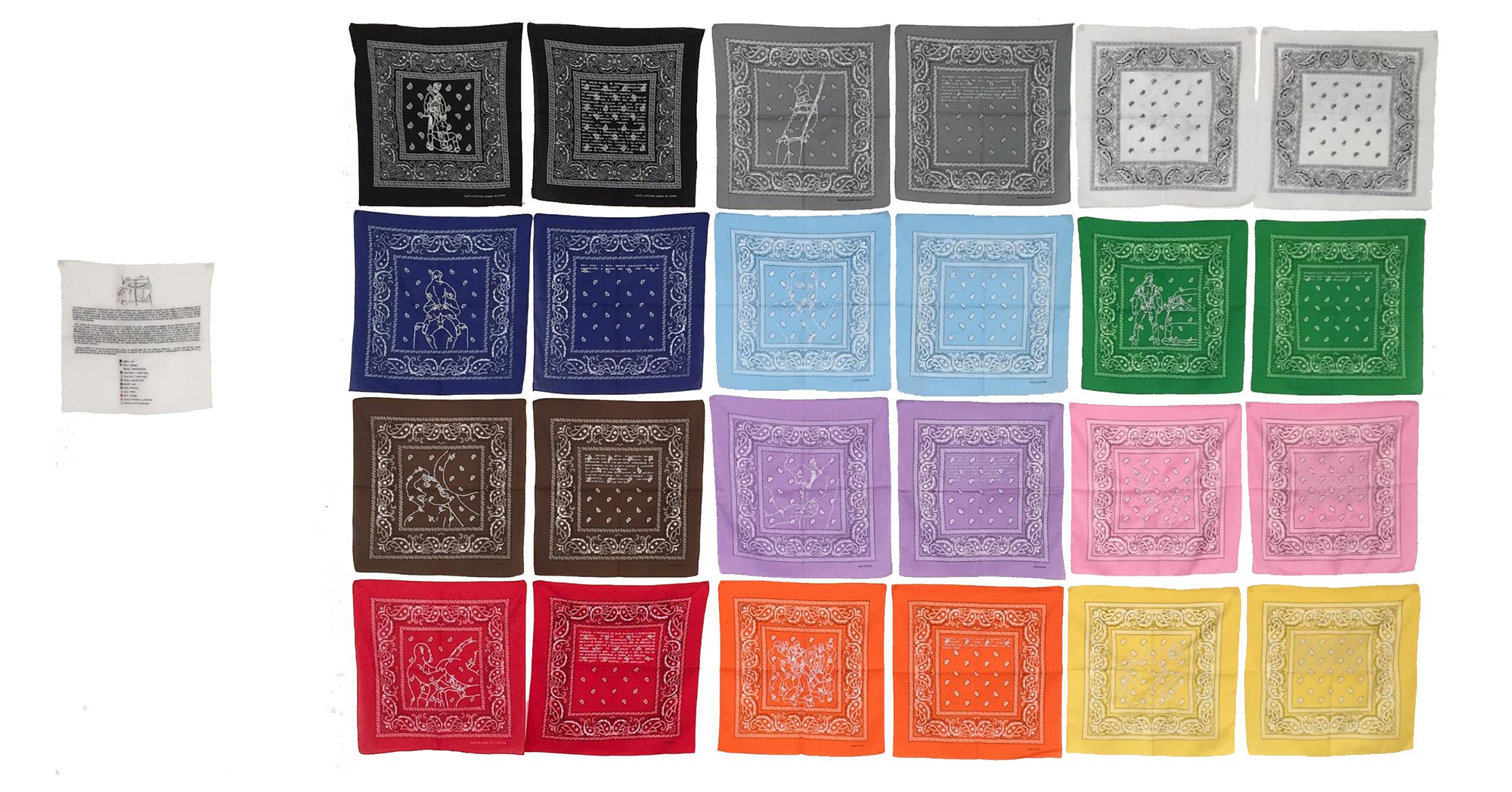 Esta instalación, con distintos montajes posibles, consta de 25 pañuelos anclados a la pared. 24 de ellos son de tipo bandana, con 12 colores distintos que se presentan por parejas, en una degradación de color. Todos están bordados a mano con hilo blanco. A la izquierda de este conjunto se sitúa un primer pañuelo blanco, como espacio seminal, donde, con hilo negro, se ofrece, a modo de introducción, una explicación de lo que es el código de pañuelos (Hanky Code) y su historia.