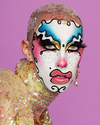 El drag le permite explorar todos sus intereses. Le ha ayudado a encontrarse, quebrando su timidez, pero sin convertirse en un personaje histriónico. Al contrario, hace un drag serio, pulcro, que no molesta, que se queda en una dimensión estilizada y elegante de lo no binario. Ese es otro de los puntos por los cuales se distingue. No crea una parodia de un género concreto, se mueve en el terreno de la indeterminación. Quizás, por estas cualidades ha conseguido colaborar con grandes marcas. Y justo este mundo de colaboraciones es el que más le entusiasma, porque se impregna de los saberes de l+s otr+s, transitando una formación continua, sin final. Un trabajar en equipo, junt+s, con tal de crecer, venciendo la soledad de los pinceles y el papel.