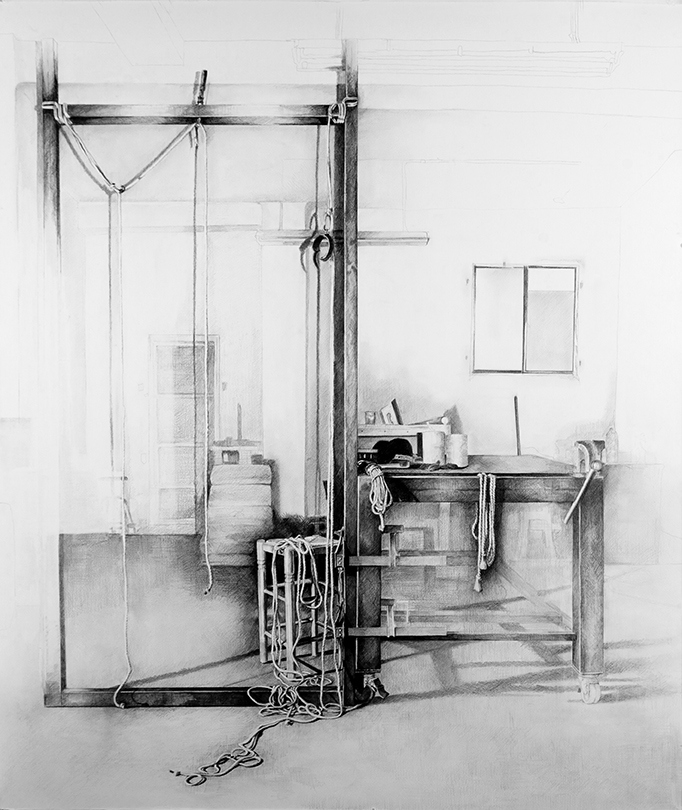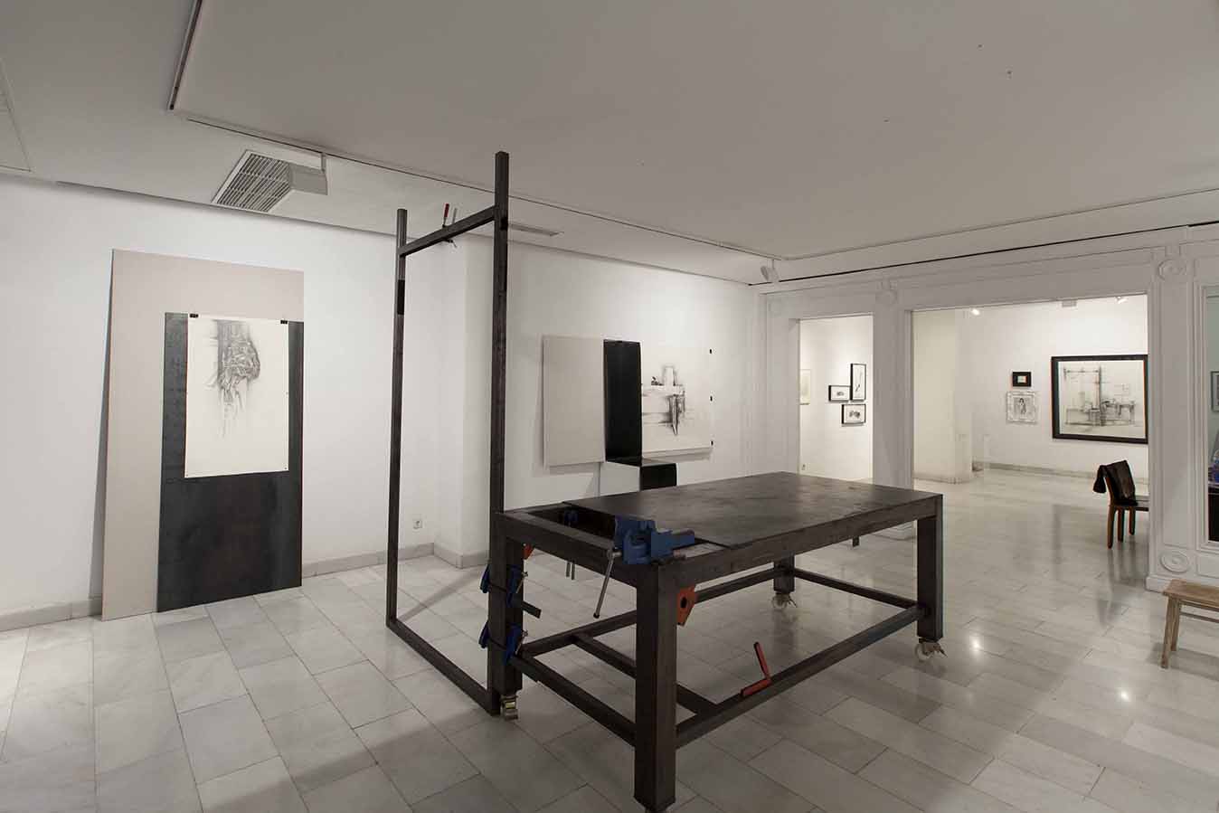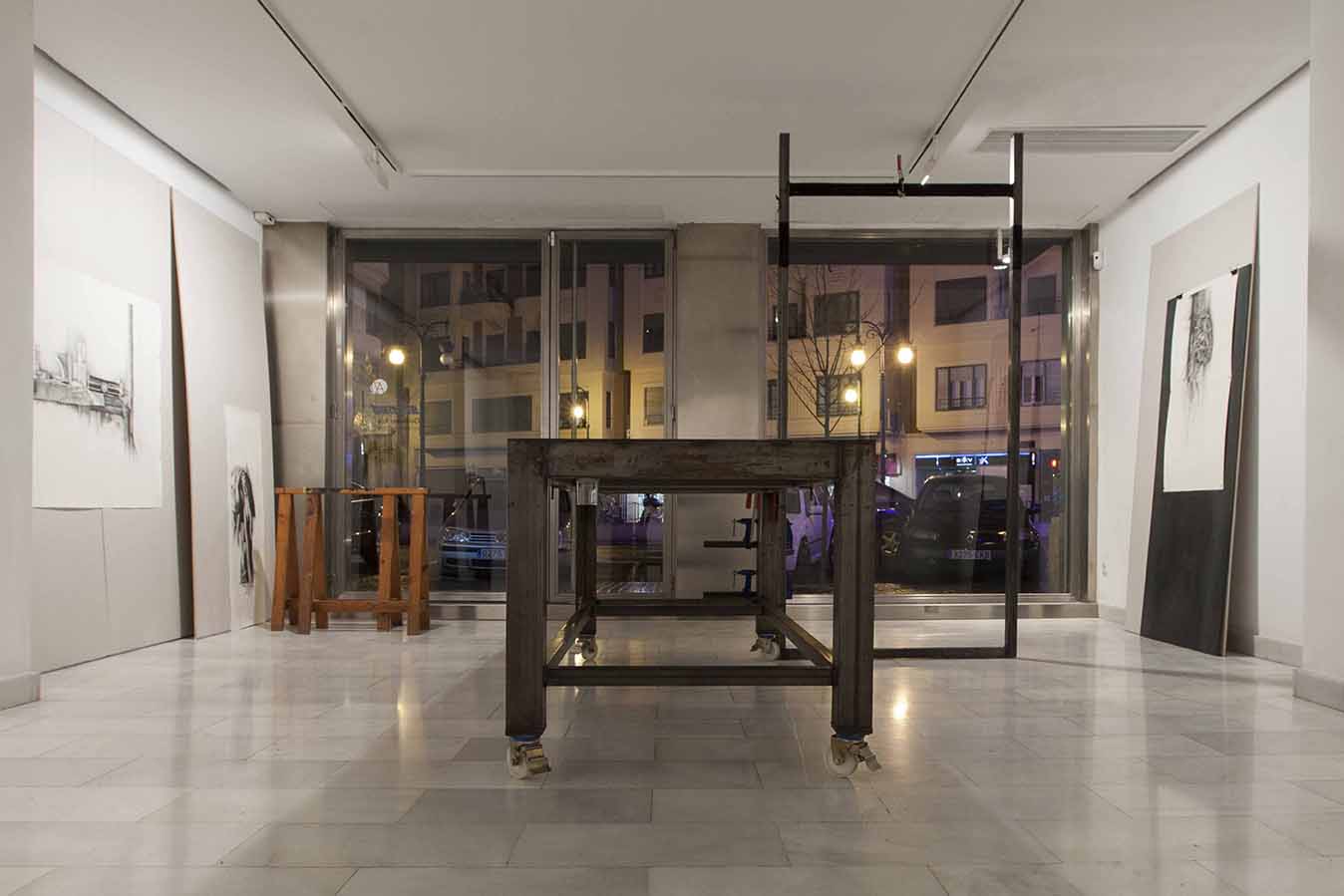 En la sala, Tejero recrea el espacio del estudio. La pieza central, Operatorium, sobre la que pivota toda la obra, es una mesa de acero llena de cuerdas, como una mesa de operaciones. Este mobiliario, en realidad, cumple una doble función: es su mesa de soldar, y también es la mesa que usa en sus sesiones BDSM. A su alrededor se presentan una serie de dibujos que, directamente, se relacionan con el punto de vista de la mesa. Así se anuncia una circularidad, en la que se entreven los cuerpos, volviendo una y otra vez, practicando lo ya practicado, rozando nuevamente la cima del clímax.