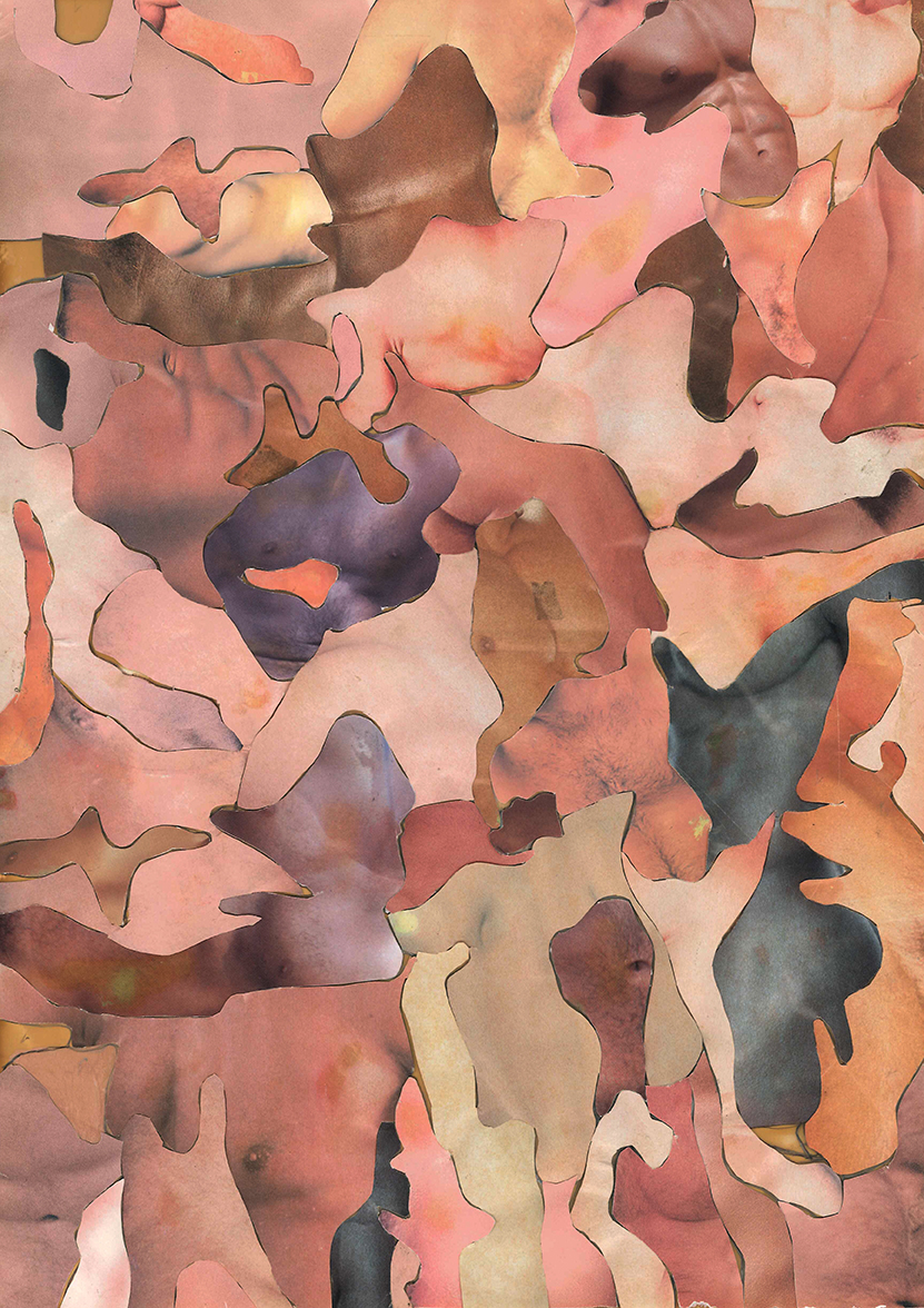 Pieza que imita el estampado militar mediante un collage hecho de pieles y cuerpos masculinos. Los cuerpos se distorsionan, cercenan y montan en un juego que pretende poner al mismo nivel la representación de la masculinidad, como un disfraz que responde a la norma impuesta por el ejercicio y la estética gym estereotipada. Leo Bernasi opina que la masculinidad se adopta porque siempre logra triunfar, incluso en el mundo gay. A través de ella se consiguen compañeros sexuales más atractivos. El deseo no se ejecuta sobre un cuerpo neutro y asexuado, sino sobre una idea platónica de cuerpo masculino, sobre aquello que culturalmente nos han dicho que significa ser un hombre, como una norma inexorable que sólo genera homogeneidad. Por tanto, la lógica del deseo homosexual hace que hallemos satisfacción y atracción hacia quienes son enemigos de los gays: los homofóbicos, masculinistas y misóginos.
