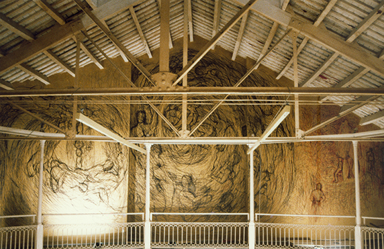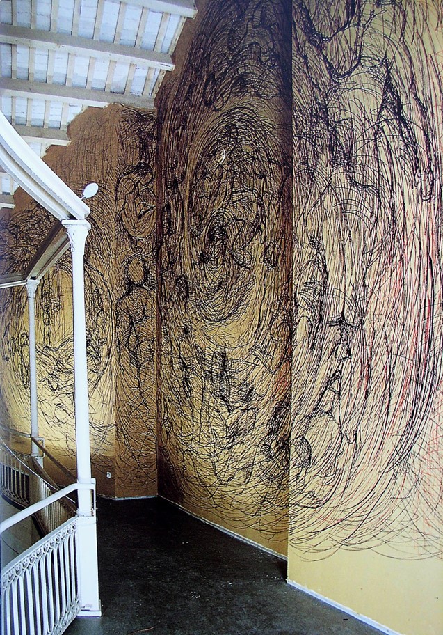 En el tercer piso de la sala La Gallera (València), realiza una especie de grafiti-fresco, como pintura religiosa queer que se convierte en una oda a la hipersexualidad. La cúpula de este edificio la vincula con la arquitectura sacra y la gloria divina para general una escena de celebración sexual de cuerpos masculinos, como si se encontrasen en un escenario extático de sauna o cruising. El dibujo lo genera in situ, durante una semana de trabajo. Sobre las paredes amarillas, las líneas perfilan y se amontonan en formas sinuosas, como anotaciones de aquello que ha de ser recordado, como los apuntes que toma en una libreta quien, al despertarse, no desea olvidarse de sus sueños.