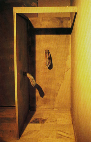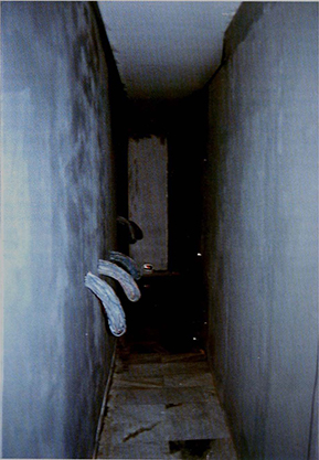 En el sótano de la Galería Punto se construye un cuarto oscuro, con su disposición de pasillos laberínticos, pintado de gris y asolado por la intimidad de una temerosa oscuridad. El suelo se presenta sucio, pegajoso, húmedo, como si recogiese los sobrantes de cuerpos deseosos. De las paredes brotan lánguidas, como un quejido, protuberancias que recuerdan a falos expectantes. Da la sensación de que el deseo está latente, pero no fluye, algo no acaba de funcionar. En otros tramos de la dark room hay agujeros por los que se puede mirar, como un campo de glory holes esperando a ser activados. Esta pieza incide en la idea de continuar la vida sexual a pesar del peligro del VIH, es más, contempla el flujo de deseo como un recorrido que requiere de la corporalidad y de la participación de l+s espectador+s.