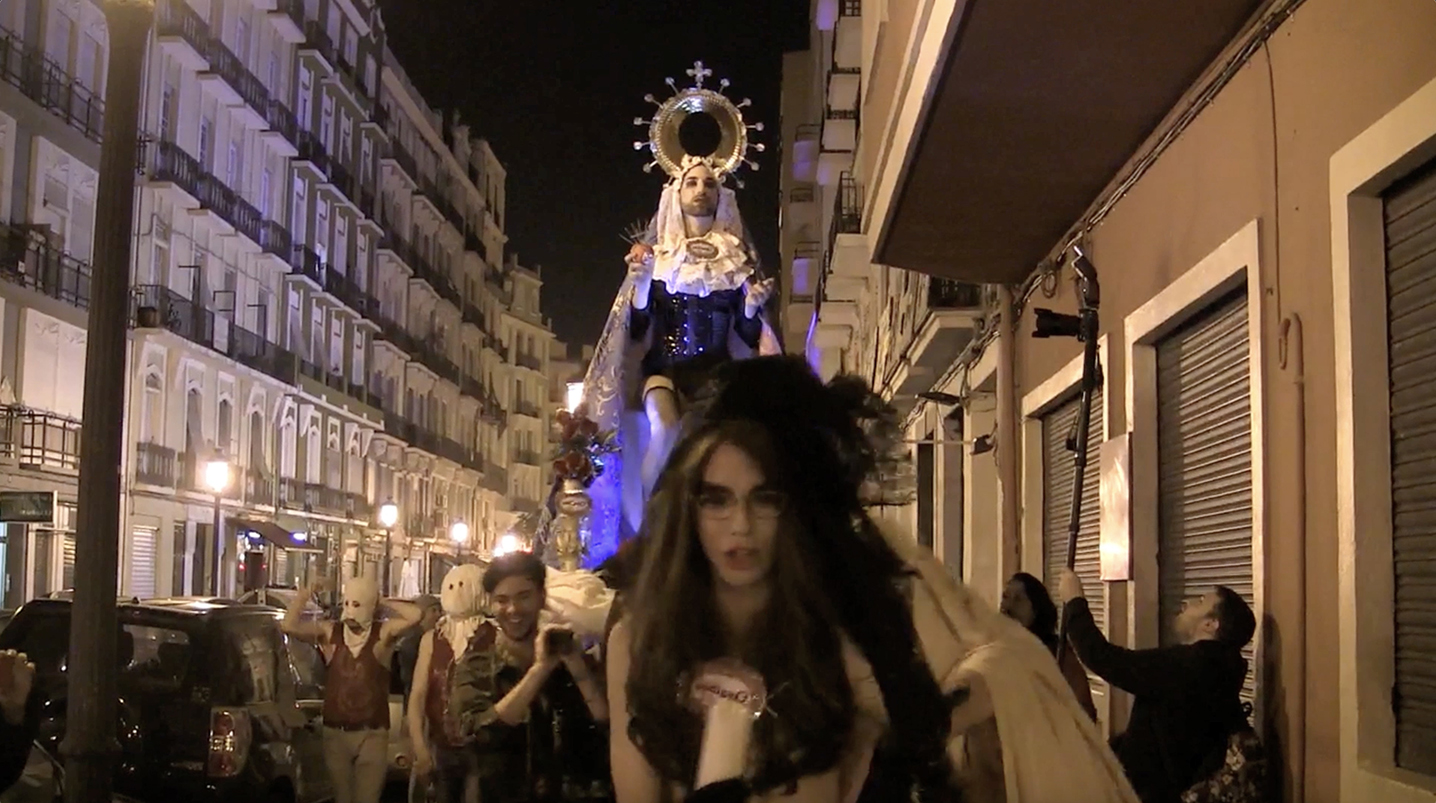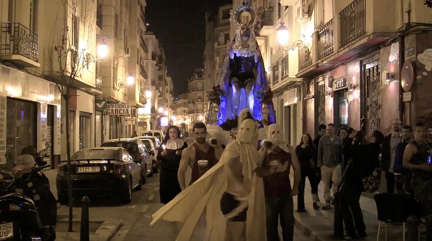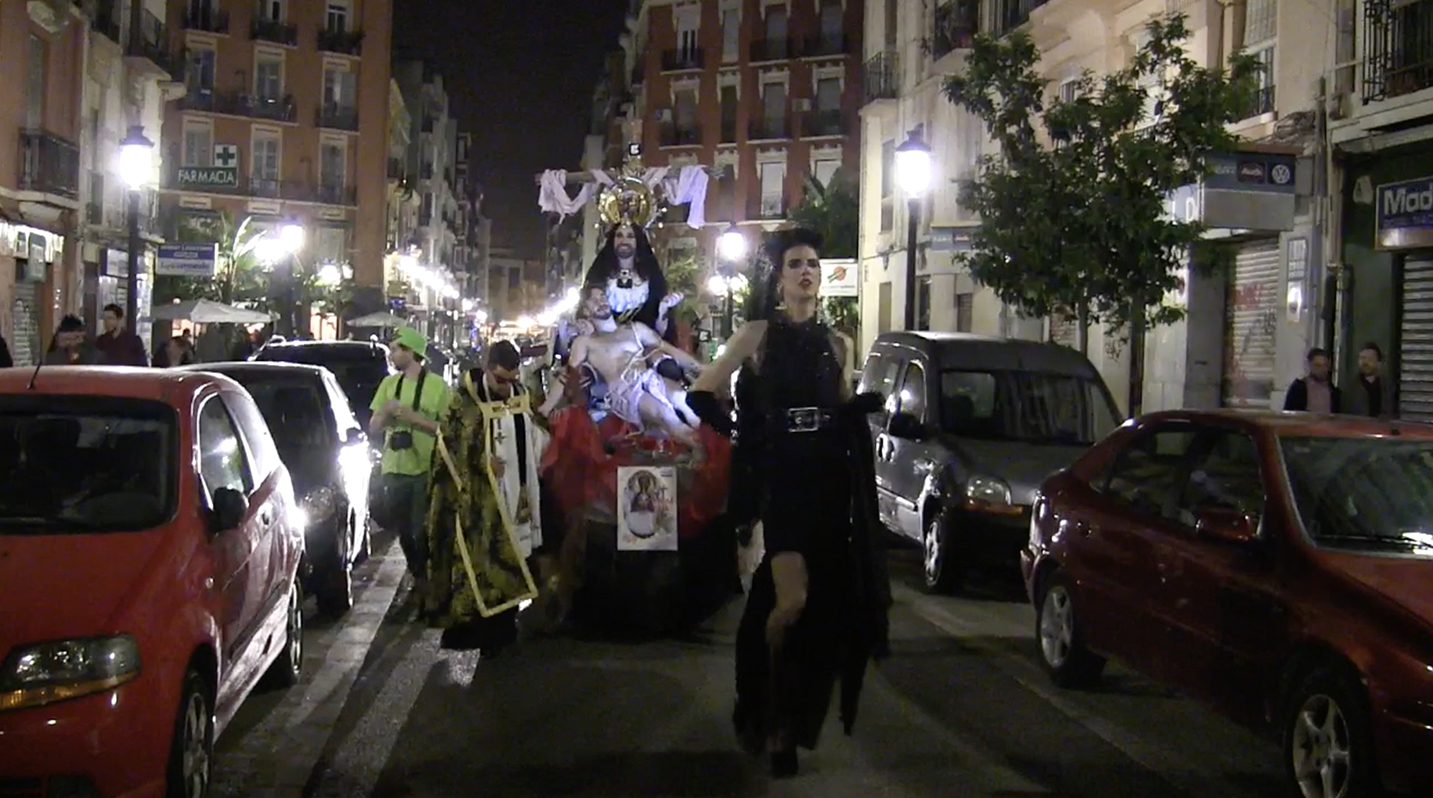 Durante la Semana Santa de 2014 y 2015 la discoteca Código G organiza una procesión de la Virgen Travesti. Liz encarna este personaje. Para anunciarlo empapelan la ciudad con su imagen. En la acción participan amig+s y compañer+s como La Kilómetro. El jueves 17 de abril de 2014 sobre cuatro costaleros aparece por las calles de Ruzafa Liz caracterizada como la virgen, con manto, mantilla, aureola, gola, corsé y las piernas al aire. Sentada sobre un palio decorado con telas y flores rojas, porta en la mano, en lugar de un sagrado corazón, una naranja atravesada. Marchan durante la noche, de forma silenciosa y sacra. Se detienen en un punto para que desde el balcón La Kilómetro les dedique unos cantos.