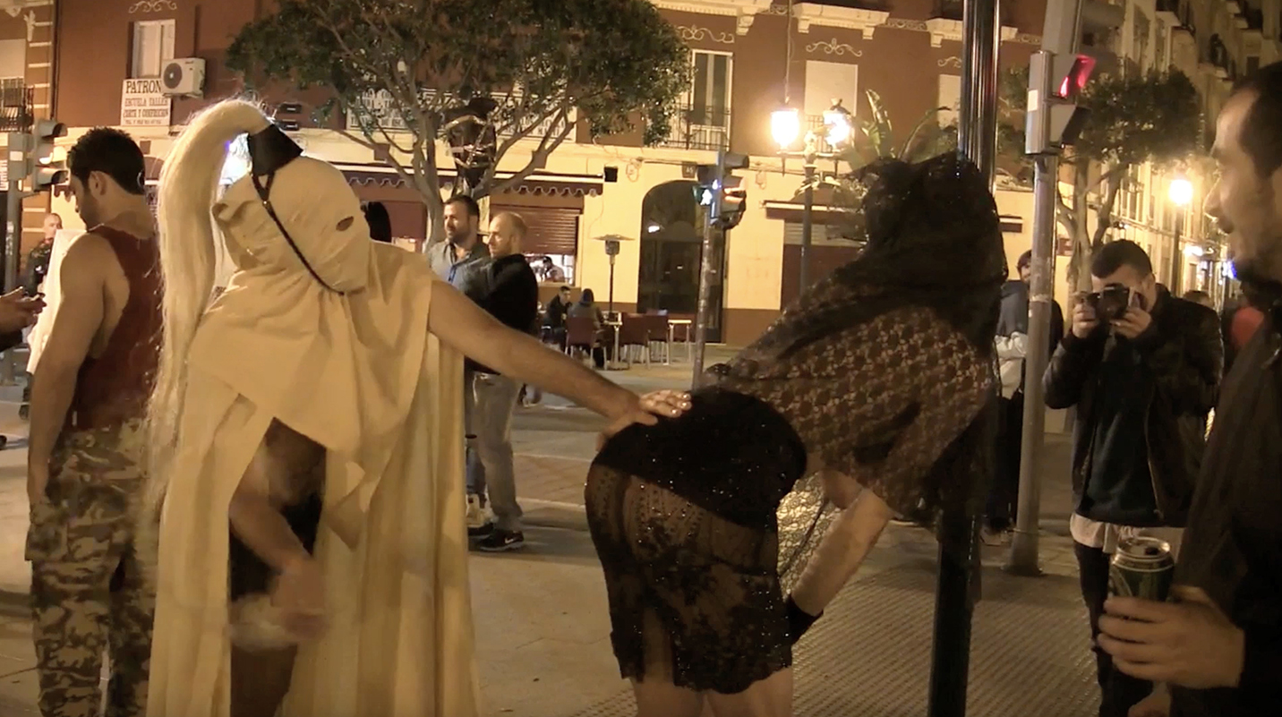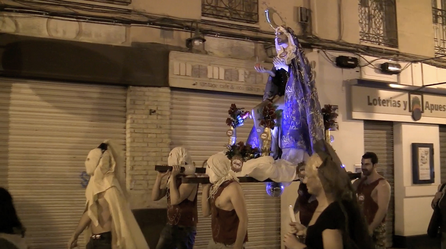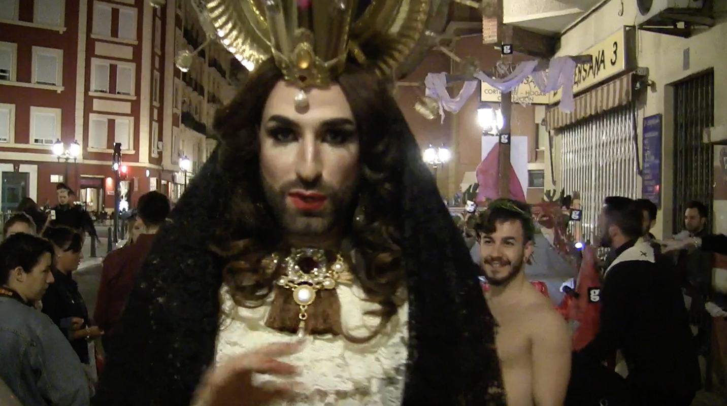 Durante la Semana Santa de 2014 y 2015 la discoteca Código G organiza una procesión de la Virgen Travesti. Liz encarna este personaje. Para anunciarlo empapelan la ciudad con su imagen. En la acción participan amig+s y compañer+s como La Kilómetro. El jueves 17 de abril de 2014 sobre cuatro costaleros aparece por las calles de Ruzafa Liz caracterizada como la virgen, con manto, mantilla, aureola, gola, corsé y las piernas al aire. Sentada sobre un palio decorado con telas y flores rojas, porta en la mano, en lugar de un sagrado corazón, una naranja atravesada. Marchan durante la noche, de forma silenciosa y sacra. Se detienen en un punto para que desde el balcón La Kilómetro les dedique unos cantos.