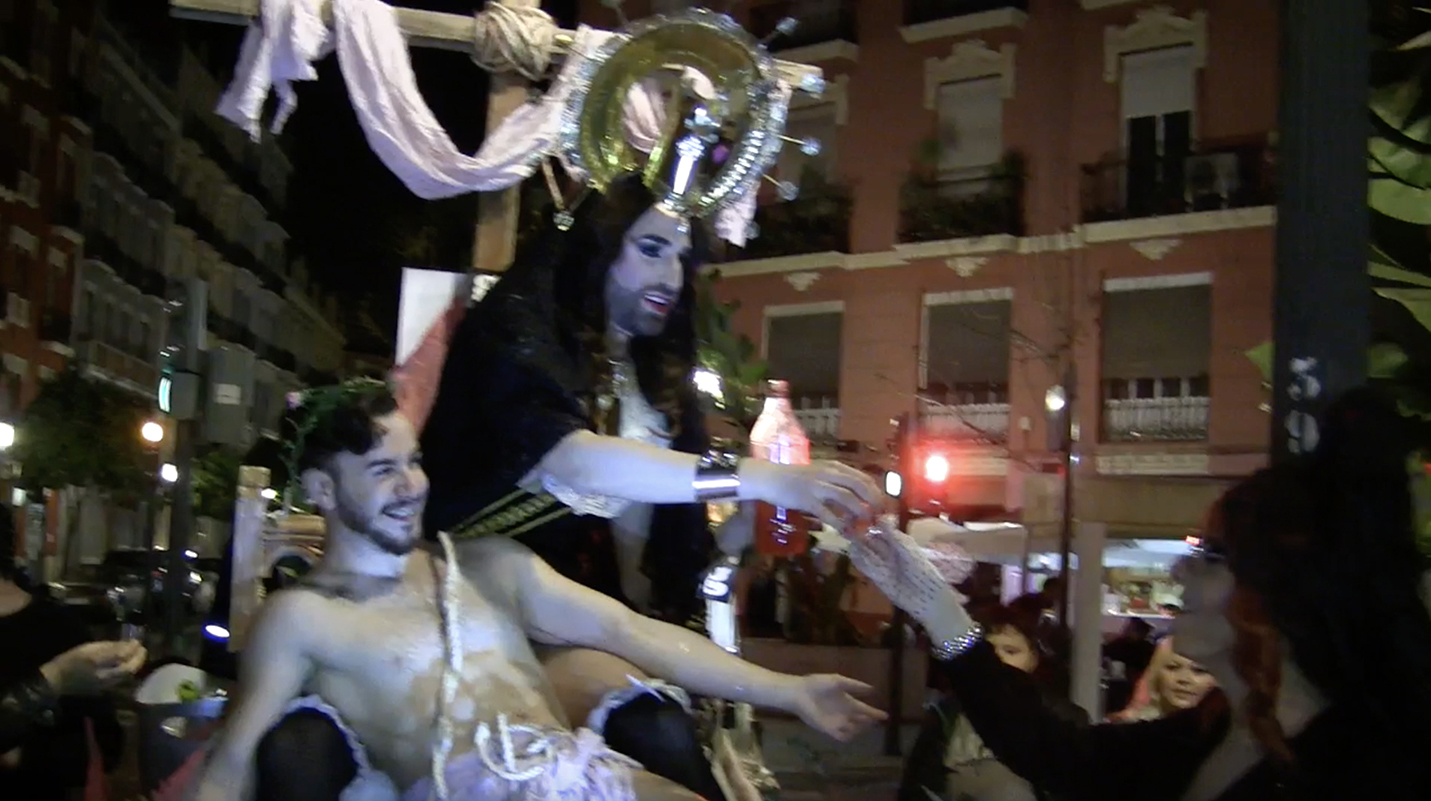 Al año siguiente sale en procesión emulando una piedad, con el Jesucristo de las Maricas Resucitadas, que yace entre sus piernas ataviado con unos paños que cubren su sexo. En esta ocasión el palio va sobre ruedas. Les acompañan travestis penitentes y un cura. Con un ambiente más desenfadado y festivo, La Kilométro le dedica nuevamente cantos en los que le solicita ser perdonada por ser marica. Liz se dirige al público, "Pedidme lo que queráis, menos dinero", "Fíjate, para un hijo que tengo y me lo matan". Reparte chupitos y pide aplausos. Una mayor cantidad de gente se suman, siguiendo el paso, gritando sus pasiones y anhelos. Una acción subversiva que tiñe de alegría los eventos cristianos de la ciudad de València.
