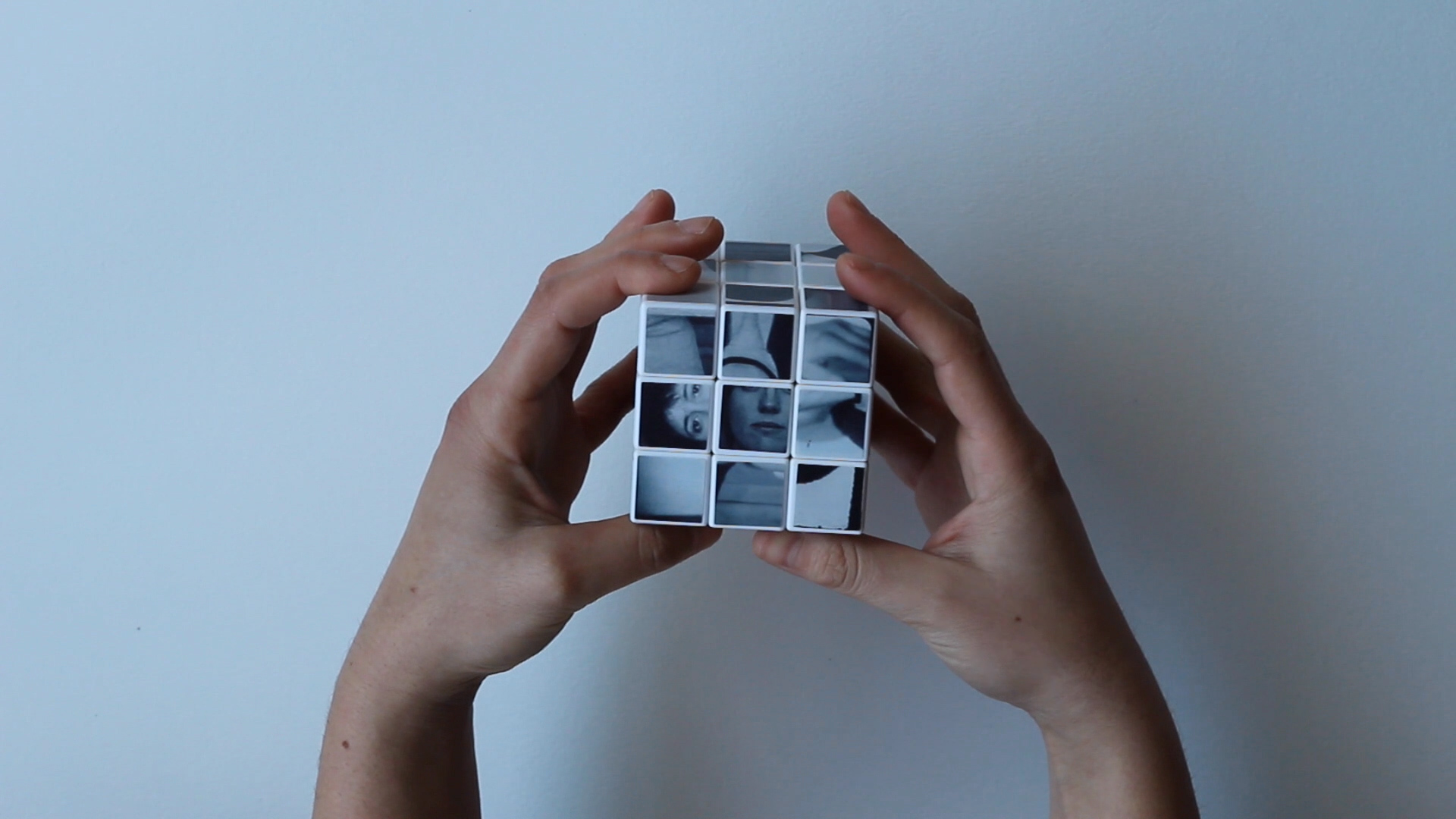 Entre 215-2017 Tinaut se saca una serie de fotografías en blanco y negro en fotomatones, con tal de captar un cambio físico y temporal. El fotomatón es un espacio peformativo donde nos mostramos como queremos ser vistos. Ella se identifica como persona no binaria, no se siente hombre, pero tampoco desea ser mujer. Hace una selección de estas imágenes, que no siempre muestran su rostro, sino también su nuca o incluso su ausencia, y las fotocopia. La fotocopia es un espacio del devenir, marcado por la accesibilidad económica y técnica (al igual que el fotomatón). Fragmenta estas imágenes y las sitúa en las seis caras de un cubo de rubik. En el vídeo, progresivamente va moviendo el cubo y mezclando las fotografías, progresivamente, en una visión calidoscópia, su apariencia se va modificando, mostrando un retrato esperpéntico, monstruoso, que sin embargo se aproxima con mayor seguridad y firmeza a cómo las cosas son realmente.