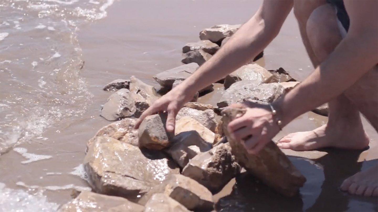 Este vídeo es un ejercicio simbólico en el que reconstruye con piedras, en la orilla de una playa, una silueta humana sin género. Cada día, las olas entierran y ocultan, cada vez más, los pedruscos, hasta que apenas queda un vago montículo que recuerda la figura a modo de cicatriz. Algo similar ocurre cuando enterramos a un ser querido, poco a poco se disuelve el amargor y la tristeza, en una sensación imprecisa que mitiga el dolor, aunque siempre queda, de forma latente, el recuerdo. Esta acción trata de reflejar los modos en los que, a lo largo de la vida, cogemos piedras, y la necesidad de soltar las cargas. Es un proceso catártico que aspira a sanar a través de la sal marina.