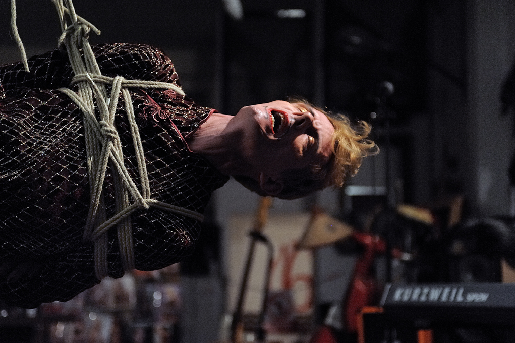 Espacio 69, dirigido por Fabrizio Campisi, funciona como espacio cultural en torno a la sexualidad. En este contexto, Graham Bell Tornado realiza una performance en colaboración con Zaima, artista experta en shibari, una antigua técnica japonesa con la que se ata un cuerpo con cuerdas (utilizada originalmente por los samuráis para suspender e inmovilizar a sus prisioneros). Durante la acción, Zaima ata a Graham de pies y manos, y l+ suspende del techo. Mientras, los músicos de Gran Tour (Carlos Martinez al piano y percusión, Sara Galán al violonchelo, y Toni "Supertónica" al bajo acústico) interpretan música. Simultáneamente, Graham entona una letanía en latín con nombres de especies extintas, a modo de lamento: