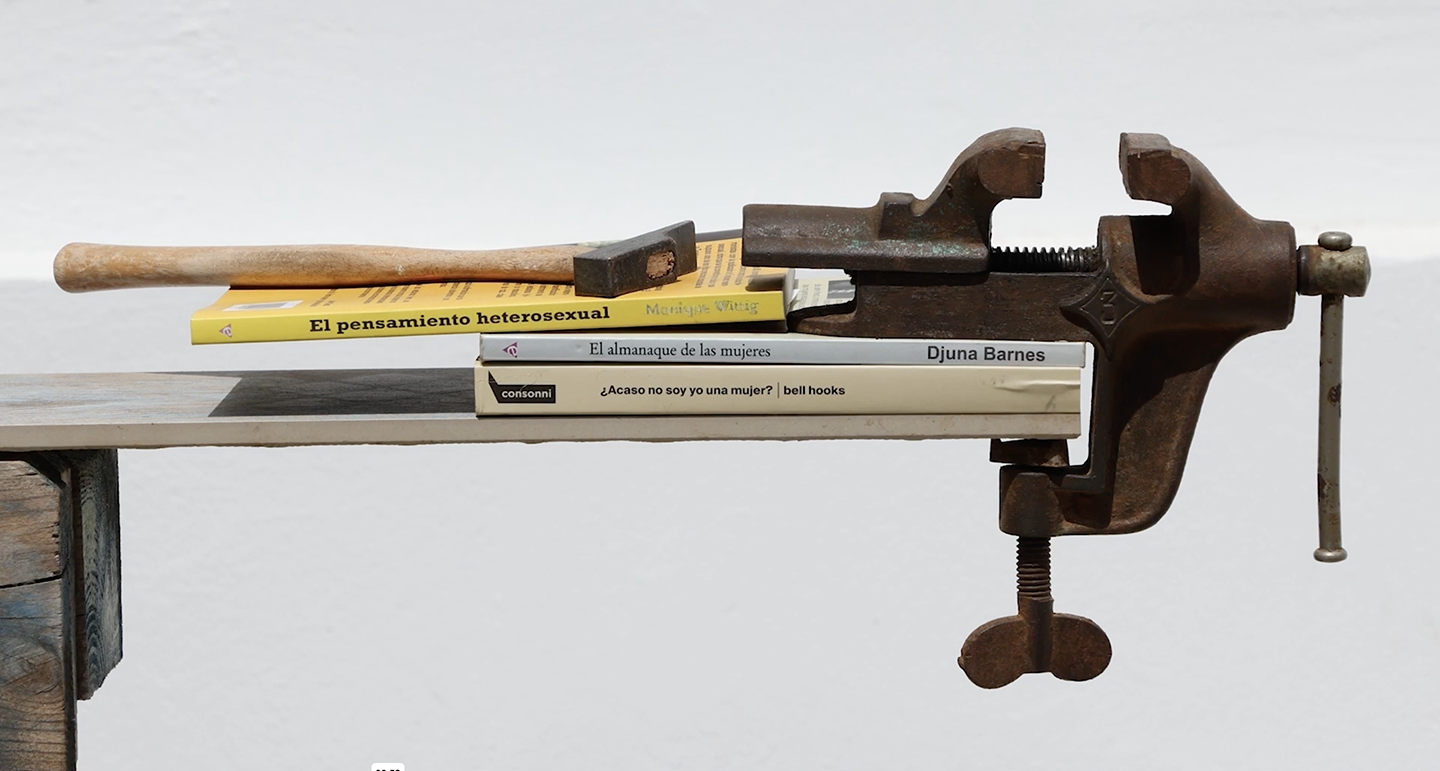 Este nuevo metaproyecto ahonda en cuáles son las metodologías y las genealogías que se producen desde la disidencia y los feminismos. Dentro del campo académico de las Bellas Artes, las herramientas son aquellas que nos ayudan a construir un discurso teórico, técnico y visual. Si se saben manejar, son valiosas, nos amparan y protegen; así como favorecen el alcanzar de forma óptima un fin, además de hacer de este fin un producto comprensible y asimilable para una comunidad. A su vez, estas herramientas contienen un latente peligro, porque su carga supone una amenaza que puede quebrar nuestras mentes y cuerpos. Si no las empleamos de la forma adecuada nos pueden conducir a la lesión del fracaso. O.R.G.I.A se sirve de todas estas analogías para crear un vídeo en el que los utensilios técnicos se fusionan con ediciones de ensayos transfeministas en hibridaciones paradójicas. El cuerpo de sus integrantes aparece, con una iconografía bollera, para poner en uso estos nuevos dispositivos. Un uso que oscila entre lo utilitario del bricolaje, el esfuerzo físico del entrenamiento y la unión de los sujetos, en un ejercicio con connotaciones sexuales que sondea el sostenernos las unas a las otras. Hacia el final del vídeo, escrito con la provisionalidad del grafito, aparece, fragmentado, el siguiente mensaje: