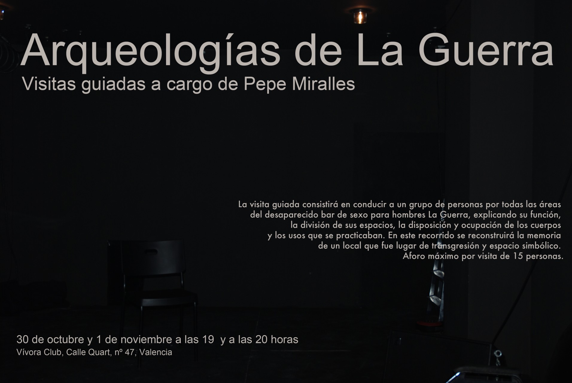 Visita guiada al desaparecido bar de sexo La Guerra (Caller Quart, 47, Valencia. Antiguo Vívora Club) a cargo del artista. En su página web, Miralles facilita el texto de la mediación. Incide en el modo en los que hombres mantenían encuentros sexuales con otros hombres, donde tan importante era la arquitectura como las prácticas corporales a través de las cuales se comunicaban, un ejemplo de ello sería una especie de "ley del silencio", donde el acercamiento, el flirteo y las prácticas sexuales se negociaban en absoluto silencio. "De alguna manera el silencio ayuda a separar lo que pertenece a su vida social en el exterior del bar, haciendo de estas dos esferas queden claramente separadas y aisladas una de la otra." Lo interesante fue ver cómo vinieron parejas heterosexuales a ver lo exótico, lo raro, incluso lo erótico. Durante los tres días la de actividad, las visitas se llenaron.