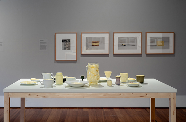 A modo de bodegón, Miralles llena de mantequilla distintos enseres (platos, vasos, jarras, cubiertos). Ante la pérdida de peso extrema que sufrían los pacientes de sida, durante los años 90 los médicos recomendaron la ingesta de grandes cantidades de alimentos grasos como la mantequilla, con tal de combatir el deterioro acelerado. Este remedio, a día de hoy, señala el tipo de soluciones facilitadas y la desesperada necesidad de creer en algo que nos mantenga con vida.