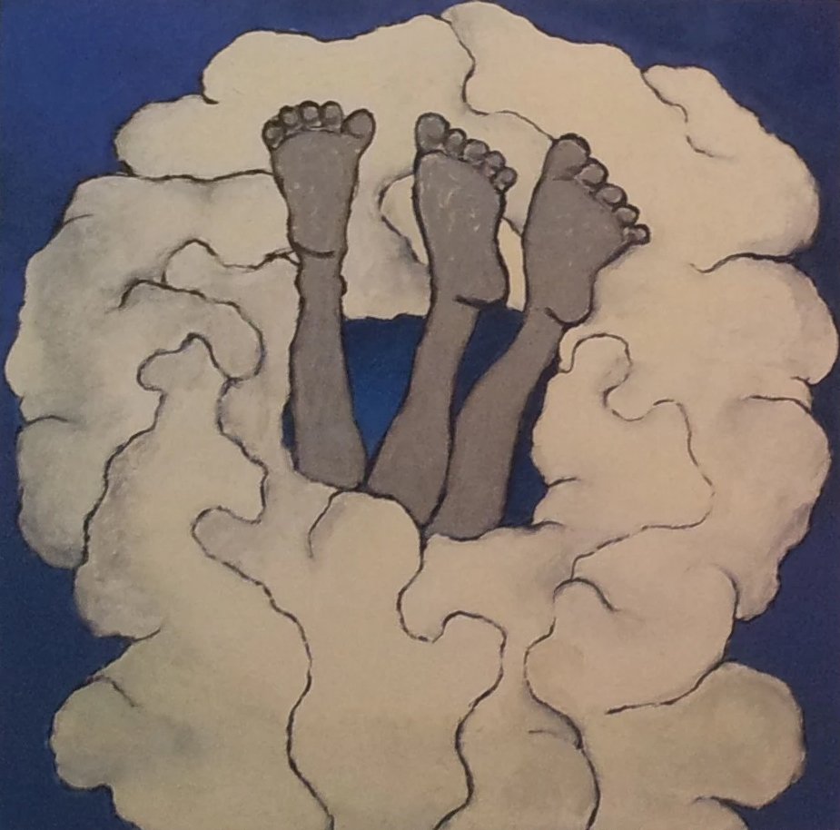La cisura es una rotura o abertura; también es una herida en la vena que emana sangre. Esta pintura presenta una nube blanca de formas curvas atravesada por tres piernas grises. Las piernas, por su proximidad, podrían pertenecer a dos cuerpos muy unidos, o tal vez a uno solo. Da la sensación de que caen a un vacío, desamparadas, exánimes, sin posibilidad de sustento. En otra lectura, podríamos estar ante una explosión en la que la morfología humana se desmiembra dando lugar a un cuerpo atroz o monstruoso. En cualquier caso, la forma de la nube, y el gesto de introducir o expulsar, evoca la imagen de un ano. En el ano, la masculinidad se compromete, se pierde o se pervierte. Es el terreno de lucha que todo homosexual debe rasgar y atravesar frente a las imposiciones de la heterosexualidad, aunque implique pérdida de privilegios, aunque augure una lesión que se desangra sin posibilidad de cura.