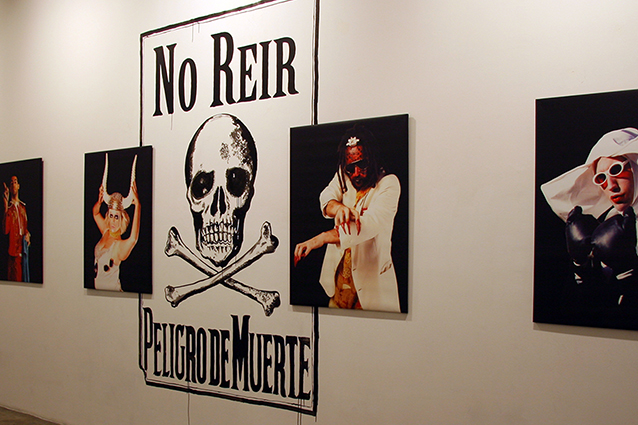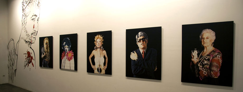 En la primera planta, los graffitis-piropos se extienden. Si nos preguntamos a quién van dirigidos, ya en la segunda planta, como colofón, se presentan una docena de fotografías sobre lona con retratos de los variopintos personajes que componen esta inusual familia: Paquita Bush, Iván Gescartera Simekaigopoff, Virgen del Podium, Zulemita Tiza, Darth Charli y la Dra. Sidra… Sus nombres son dislocaciones de personas reales, construyendo un imaginario de identidades entre lo carnavalesco y lo casposo, con infames apariencias, cutres y pop. Una mascarada que nos avanza un submundo a honrar, como escapatoria a los modos de ser impuestos por el heteropatriarcado.
