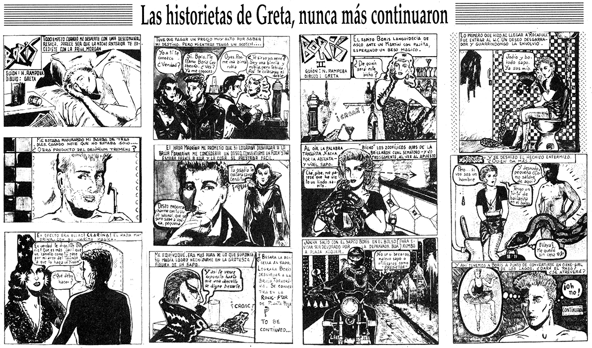 Con guión de Rampova y dibujo de Greta Guevara, solo se conservan las dos primeras partes de esta historieta. Boris es un joven a quien se le presenta un hada que le promete concederle un deseo si logra acostarse con la bruja Fornelina. Esta es una historia disparatada llena de referencias a la noche, con transformaciones sorprendentes y momentos transgenéricos hilarantes.