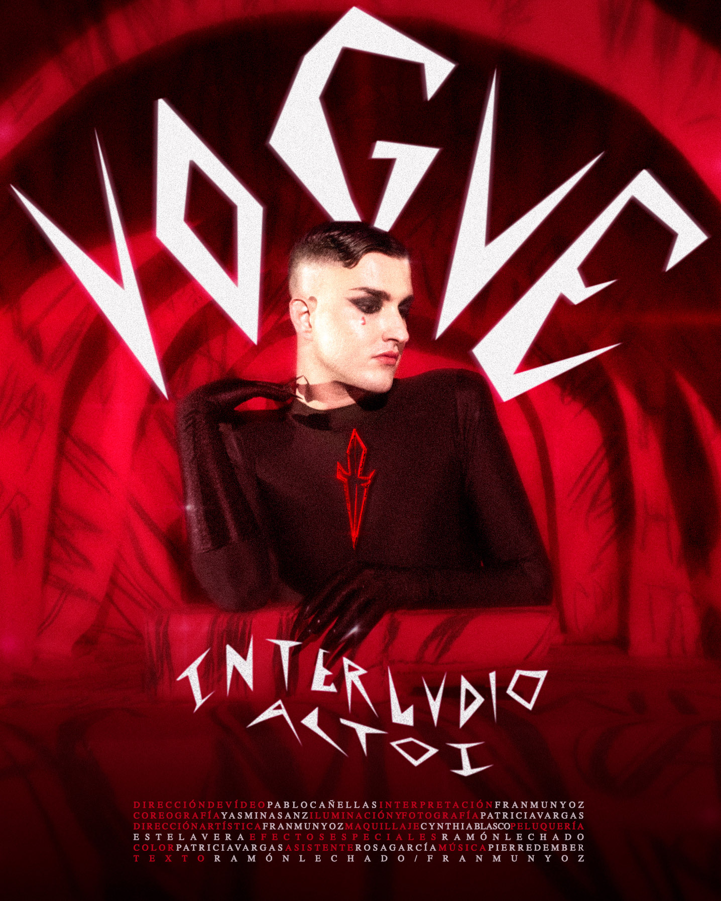 En los créditos de este primer vídeo escuchamos en susurros, como un mantra, "Tacón, rímel, carmín", un statement que introduce el primer tema de esta ópera: la metamorfosis de los individuos en los momentos previos a salir de fiesta. A continuación, aparece el busto desnudo de Munyoz en una caverna roja. Desde los laterales, una serie de brazos enguantados en negro manipulan su cuerpo, le toman medidas y le maquillan, "empolvando to' los males". Este impulso externo, salvaje, con sus larguísimas uñas rojas, se ofrece como una ayuda que transforma su identidad en un nuevo personaje, engalanado con una malla y guantes negros con afiladísimas uñas, también negras. Su rostro se presenta con sombra de ojos oscura y una lágrima roja. Esta nueva apariencia es el escudo que cada un+ se forja para afrontar la vida en sociedad, para salir a la calle con poderío y ganas de comerse el mundo.