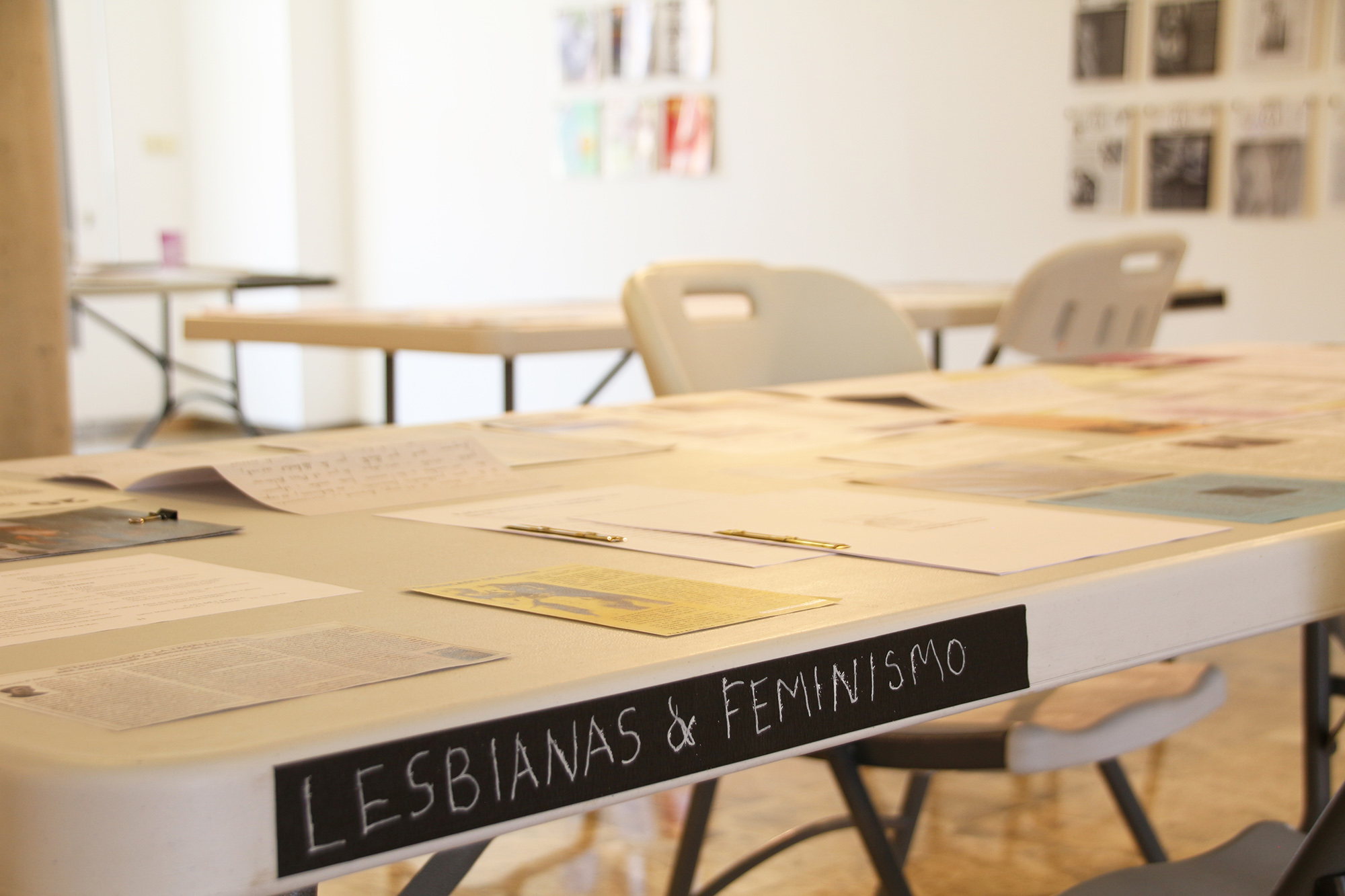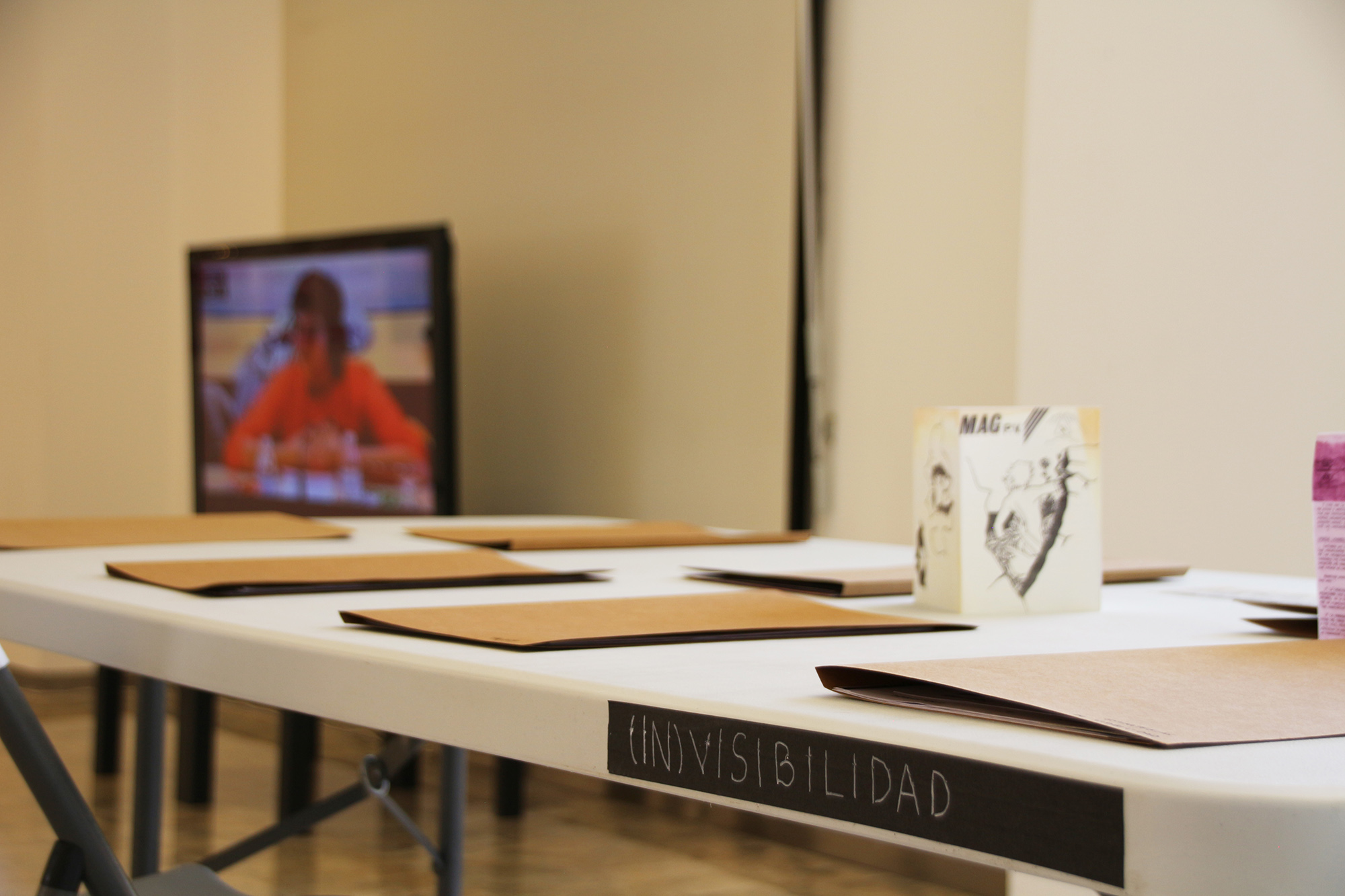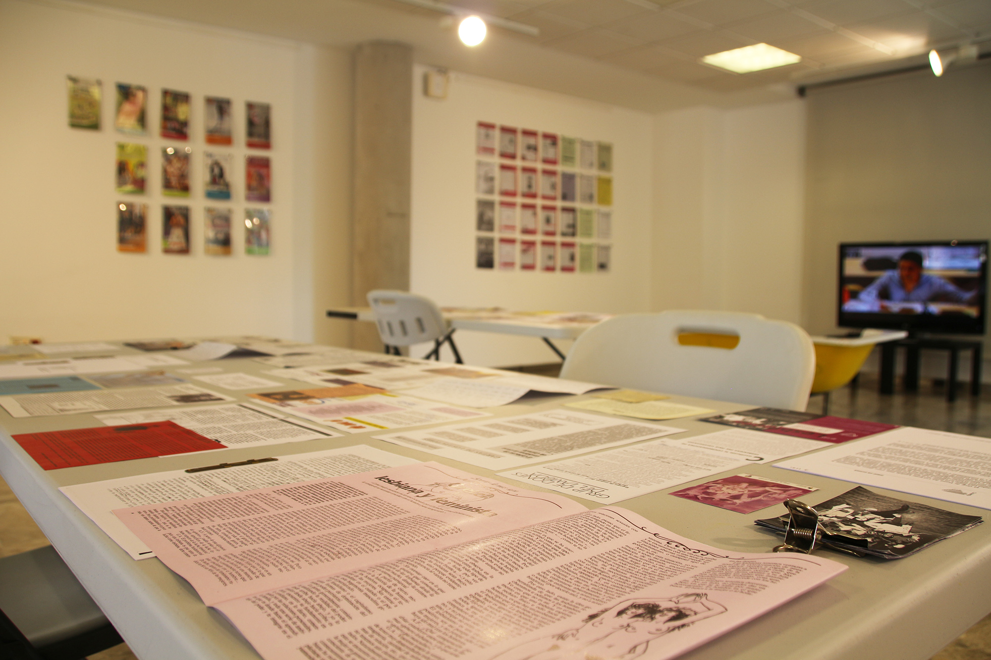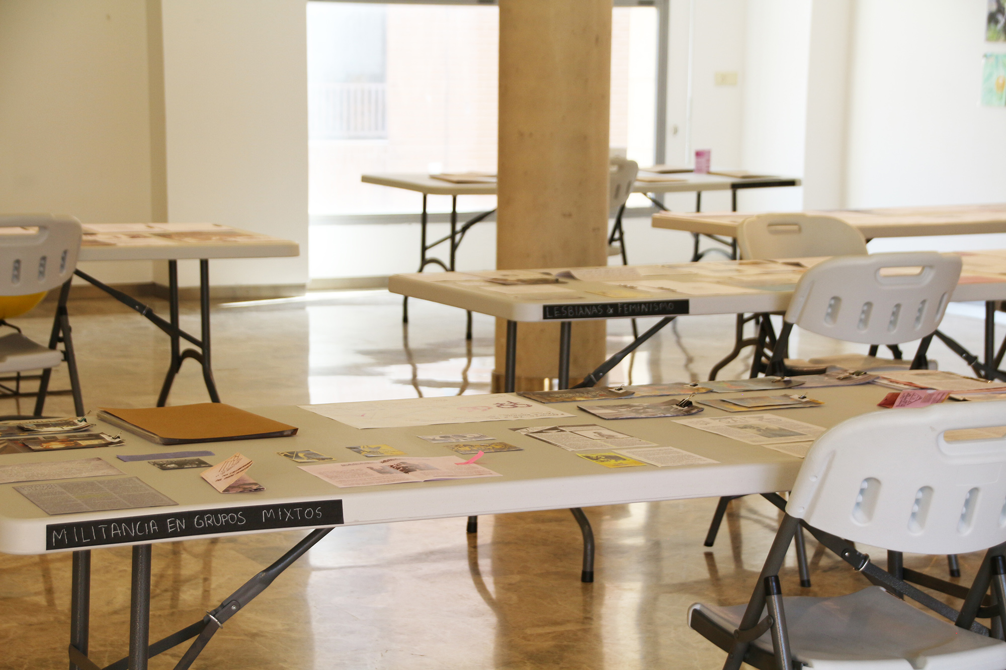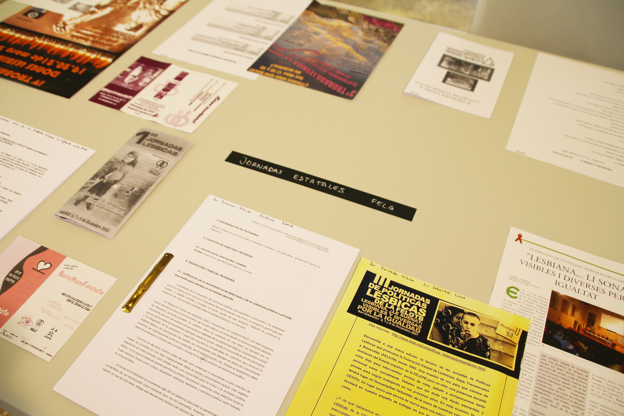 Una vez finaliza el estudio, cabe ordenar el material. En su formato expositivo, BOLLOS.doc (2018, Sala de exposiciones de Espai Jove VLC), el archivo se abre como un muestrario que irrumpe en el discurso histórico, quebrándolo, introduciendo otras narraciones que hasta el momento están acalladas, escondidas, ocultas. En su artículo Archivo lesbofeminista (Franco, 2019) nos lo explica con todo detalle. La muestra presenta una serie de revistas, vídeos y documentos. Sobre las paredes de la sala se colocan de forma cronológica las publicaciones periódicas. En un monitor se proyectan extractos de las jornadas del Primer Encuentro Estatal de Lesbianas (Madrid, 2001). En el espacio se distribuyen seis mesas que exhiben copias de distintos documentos organizados por temas, entendiendo estos temas como una ordenación concreta de tantas posibles, y que un mismo papel puede formar parte de distintas mesas.